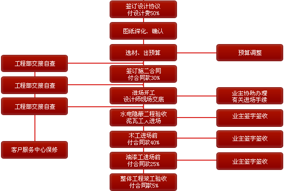 1.前期設(shè)計(jì) -- 2.主體拆改 -- 3.水電改造 -- 4.木工 -- 5.貼磚 -- 6.刷墻面漆 -- 7.熱水器安裝 -- 8.廚衛(wèi)吊頂 -- 9.櫥柜安裝-- 10.煙機(jī)灶安裝 -- 11.木門(mén)安裝 -- 12.地板安裝 -- 13.鋪貼壁紙 -- 14. 開(kāi)關(guān)插座安裝 -- 15.燈具安裝 -- 16.五金潔具安裝 -- 17.窗簾桿安裝 -- 18.拓荒保潔 -- 19.家具進(jìn)場(chǎng) -- 20.家電安裝 -- 21.家居配飾