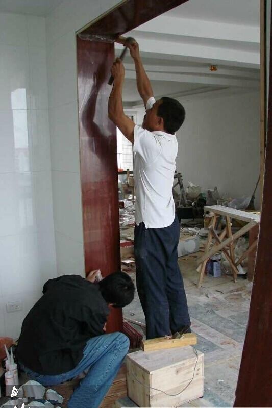 1、過(guò)門(mén)石、大理石窗臺(tái)的安裝。過(guò)門(mén)石的安裝可以和鋪地磚一起完成,也可以在鋪地磚之后,大理石窗臺(tái)的安裝一般在窗套做好之后,安裝大理石的工人會(huì)準(zhǔn)備玻璃膠,順手就把大理石和窗套用玻璃膠封住了。